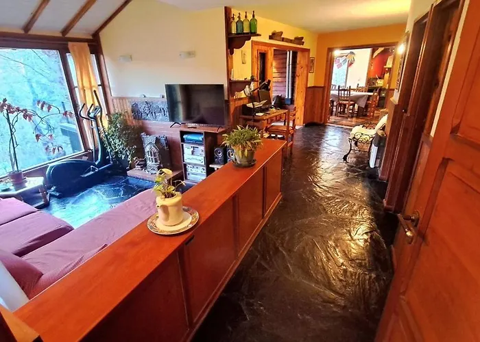 När du bor i Casa Aguileña Villa San Martín de los Andes kan du besöka Ruta 40, som ligger ungefär 3 km bort. Villan med 3 sovrum och 3 badrum har en parkering och en terrass med utsikt över bergen.